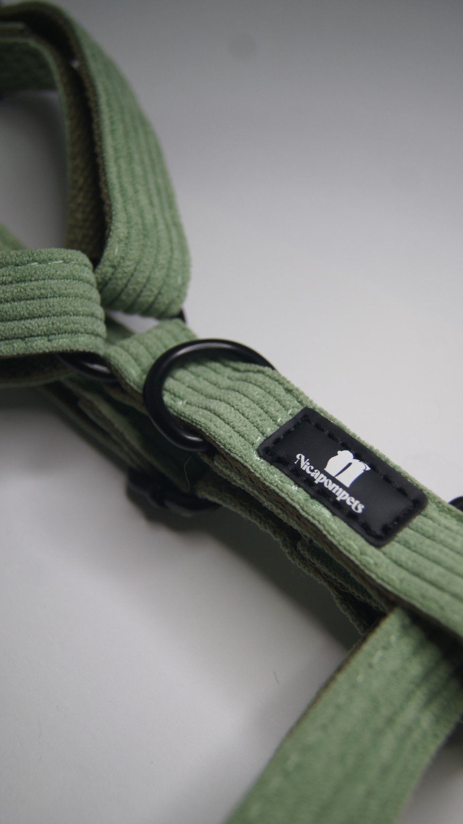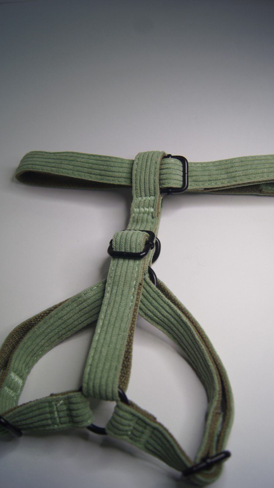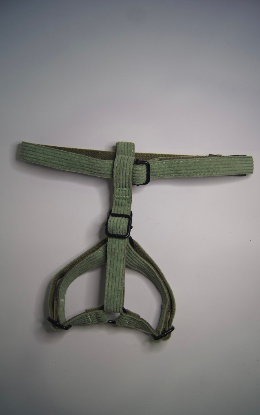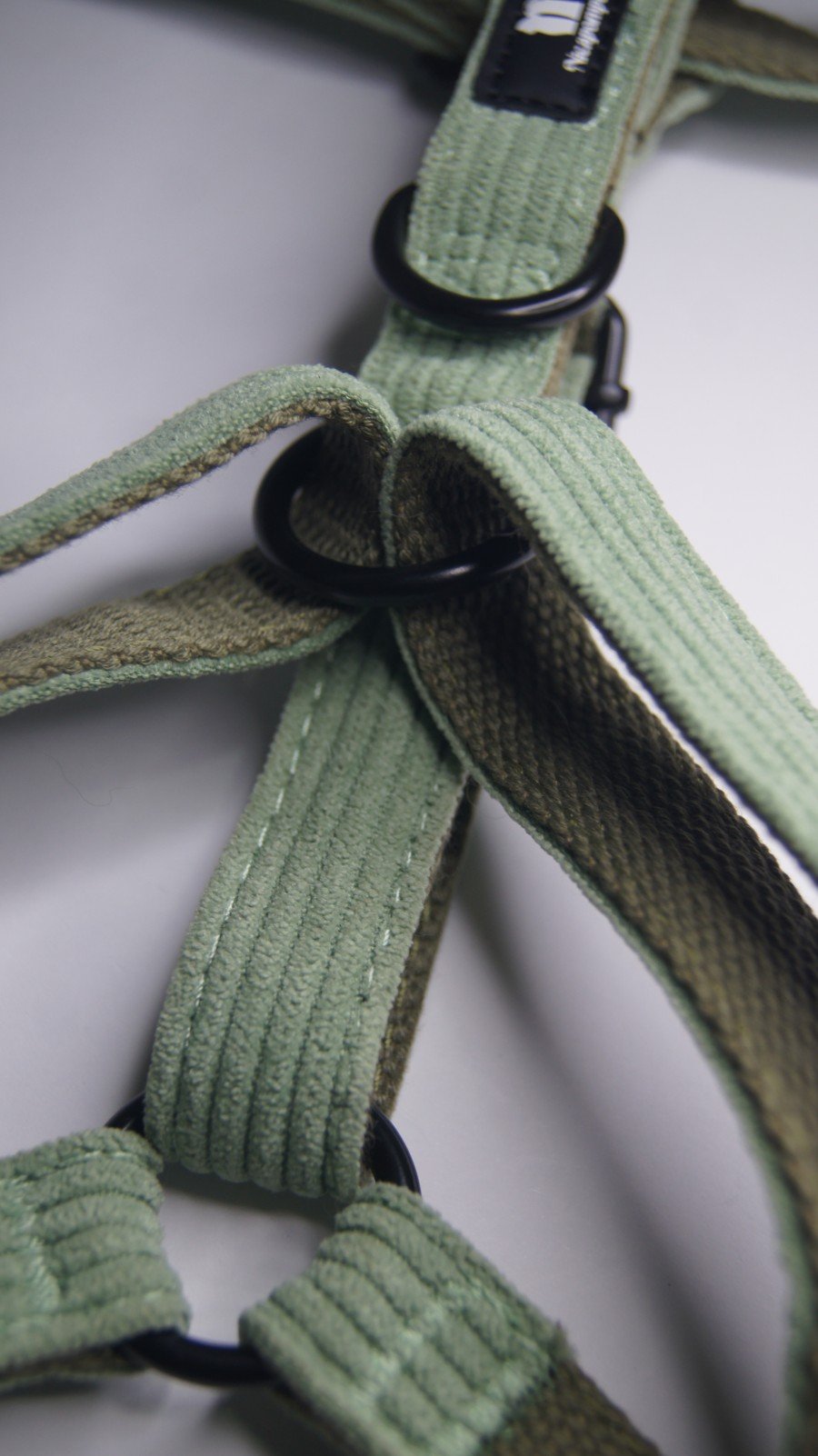 El arnés de la colección Pana tiene una esencia especial que evoca recuerdos de la infancia y adolescencia en las prendas de ropa. El tejido de pana tiene un tacto agradable, cómodo y acogedor, aportando encanto y estilo en cada paseo. Es ajustable, cierres seguros, accesorios resistentes de metal negro y un acabado elegante.