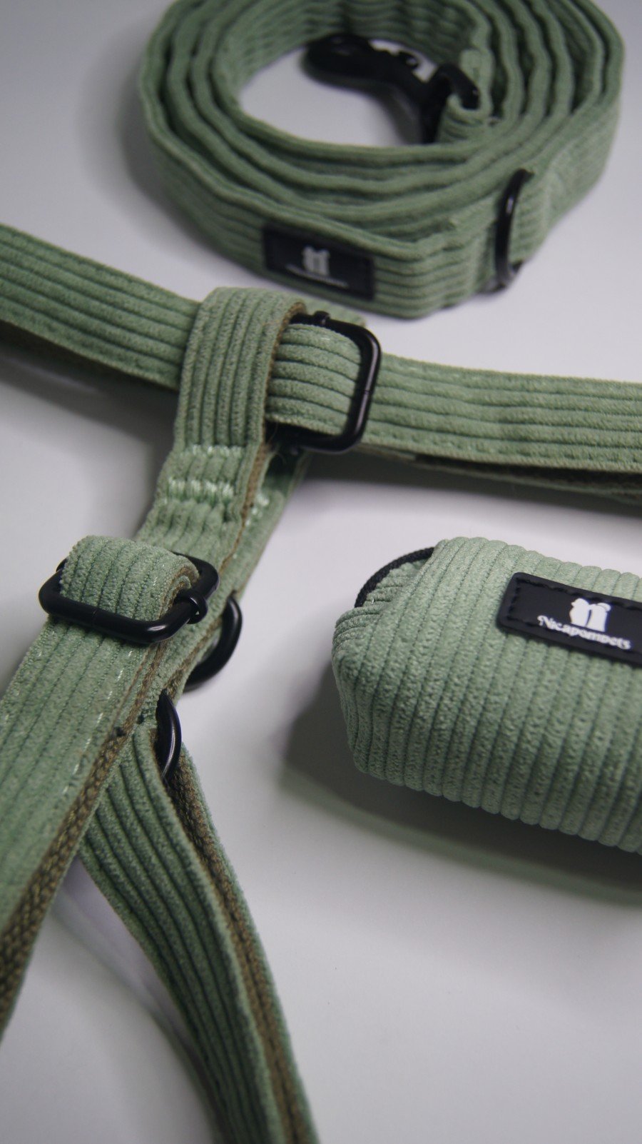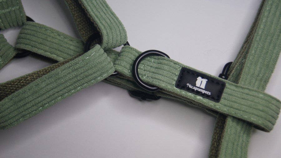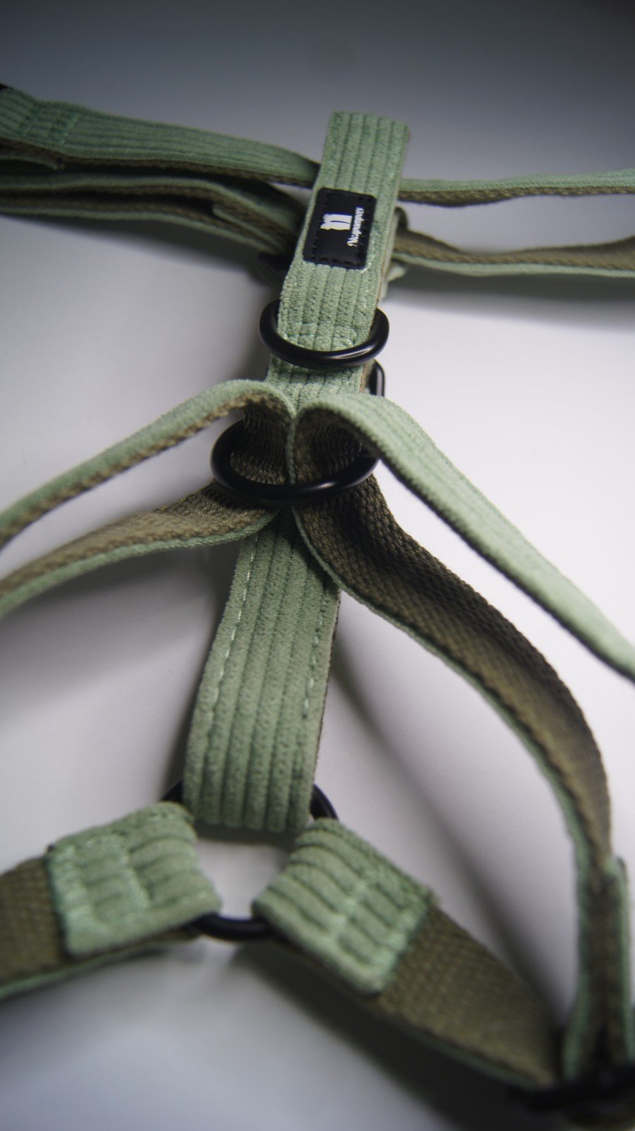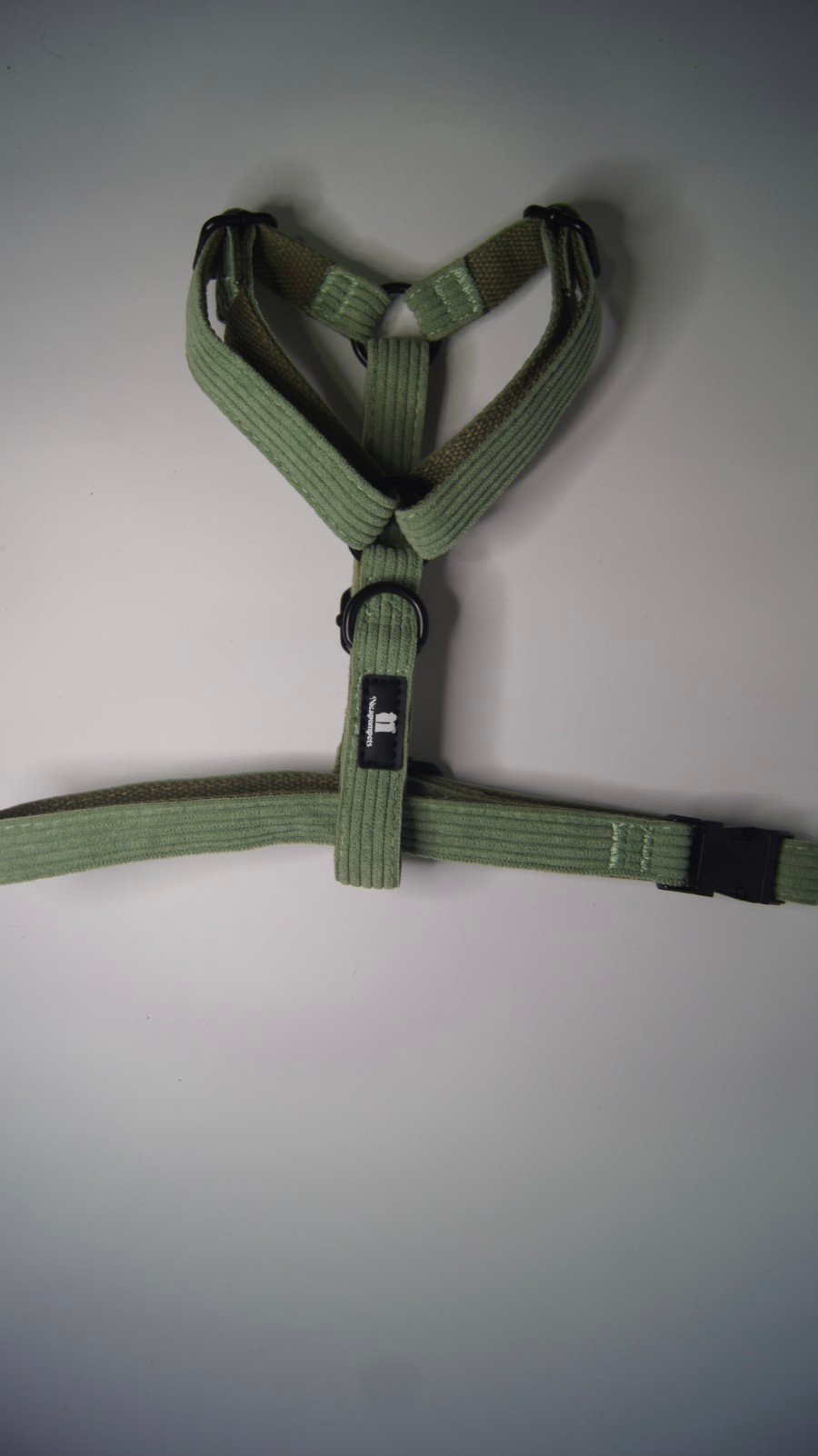 El arnés de la colección Pana tiene una esencia especial que evoca recuerdos de la infancia y adolescencia en las prendas de ropa. El tejido de pana tiene un tacto agradable, cómodo y acogedor, aportando encanto y estilo en cada paseo. Es ajustable, cierres seguros, accesorios resistentes de metal negro y un acabado elegante.