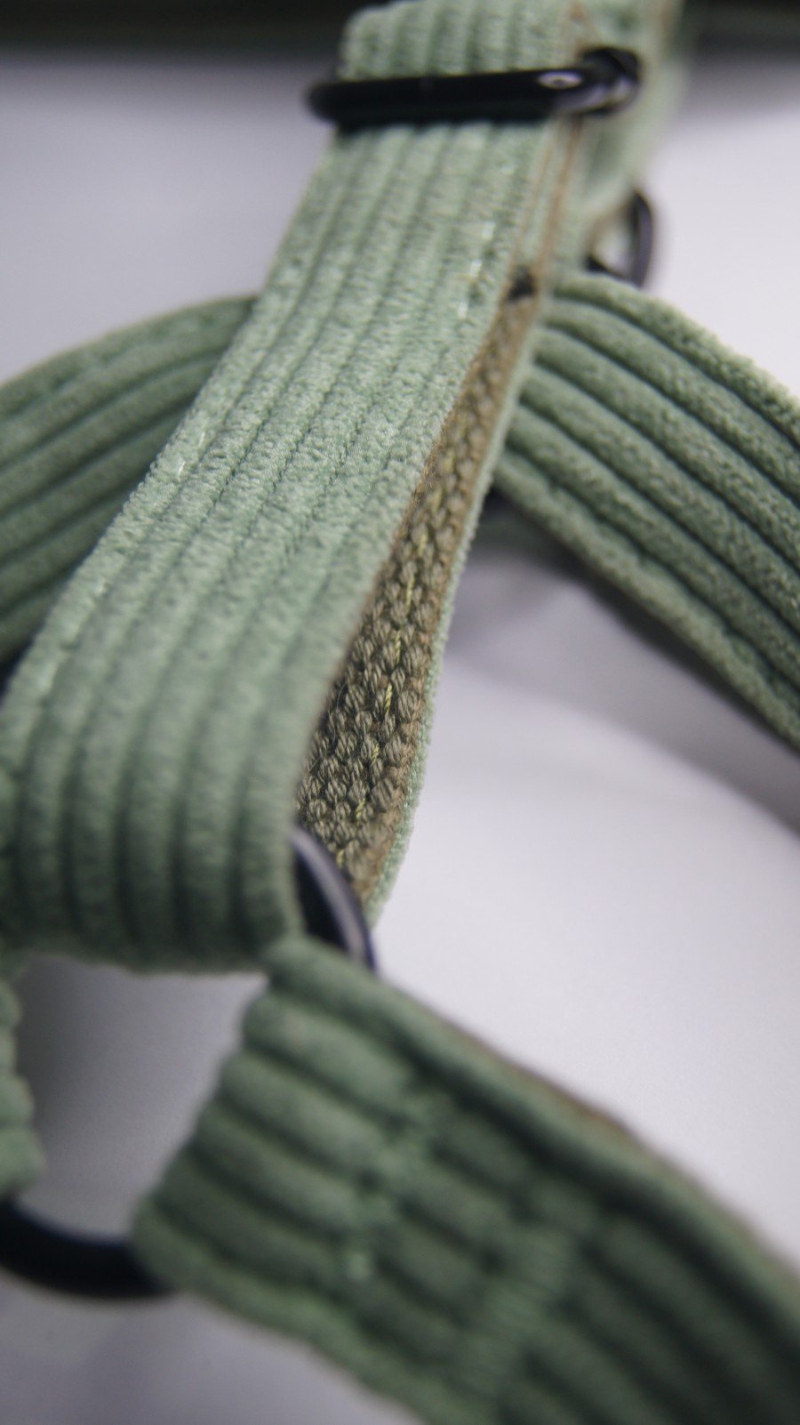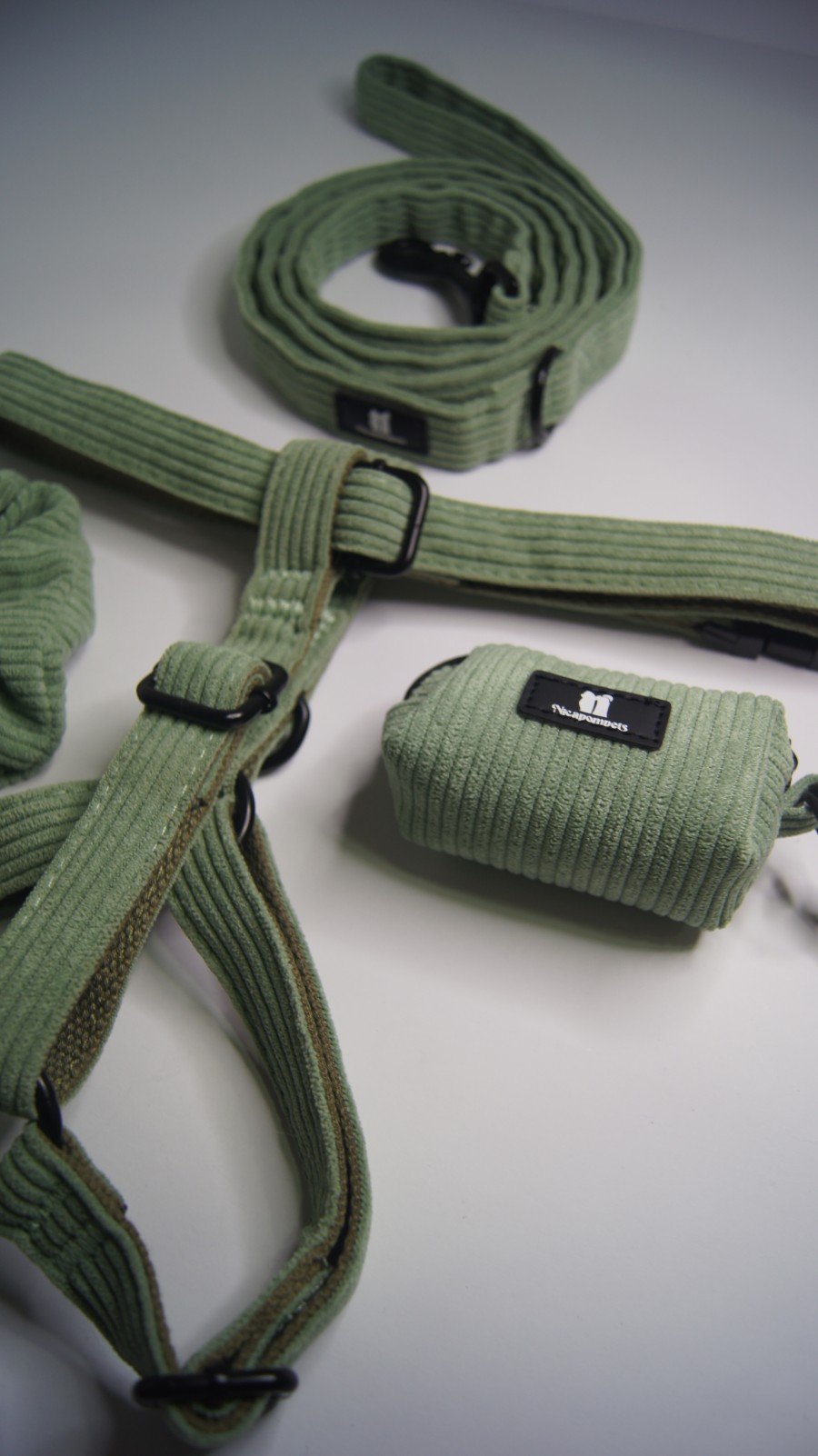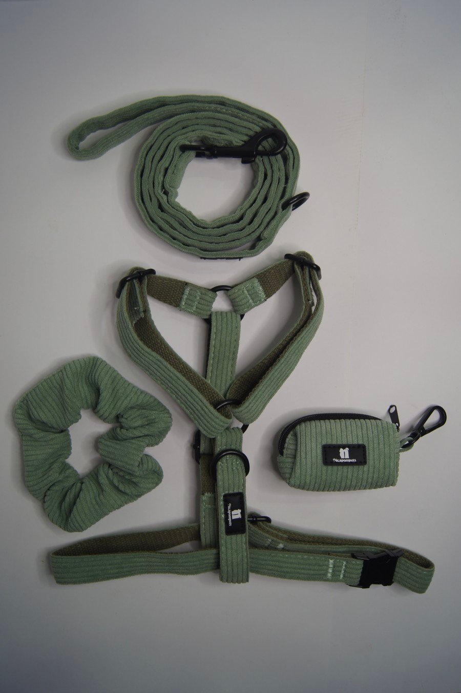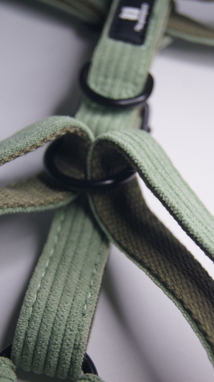 El arnés de la colección Pana tiene una esencia especial que evoca recuerdos de la infancia y adolescencia en las prendas de ropa. El tejido de pana tiene un tacto agradable, cómodo y acogedor, aportando encanto y estilo en cada paseo. Es ajustable, cierres seguros, accesorios resistentes de metal negro y un acabado elegante.