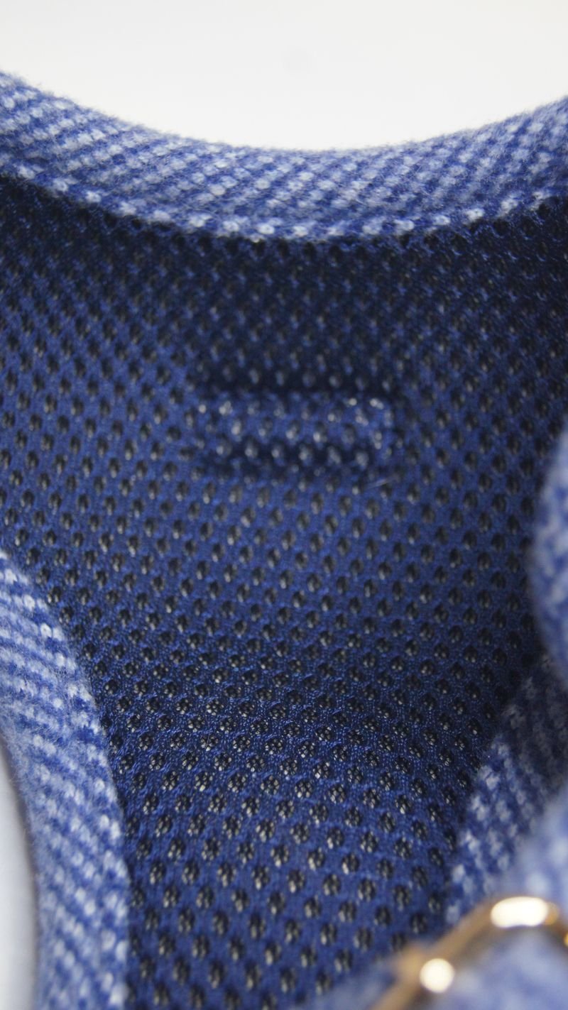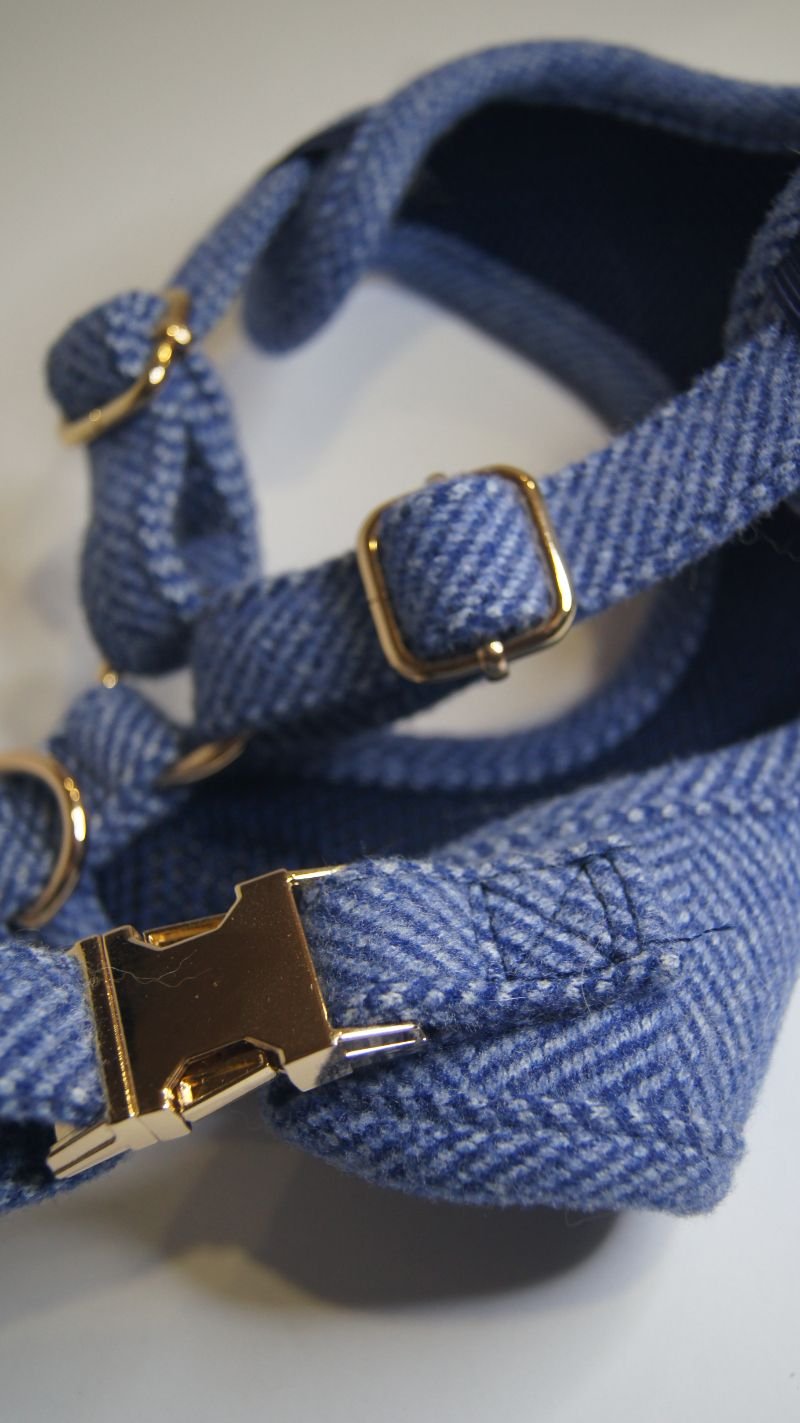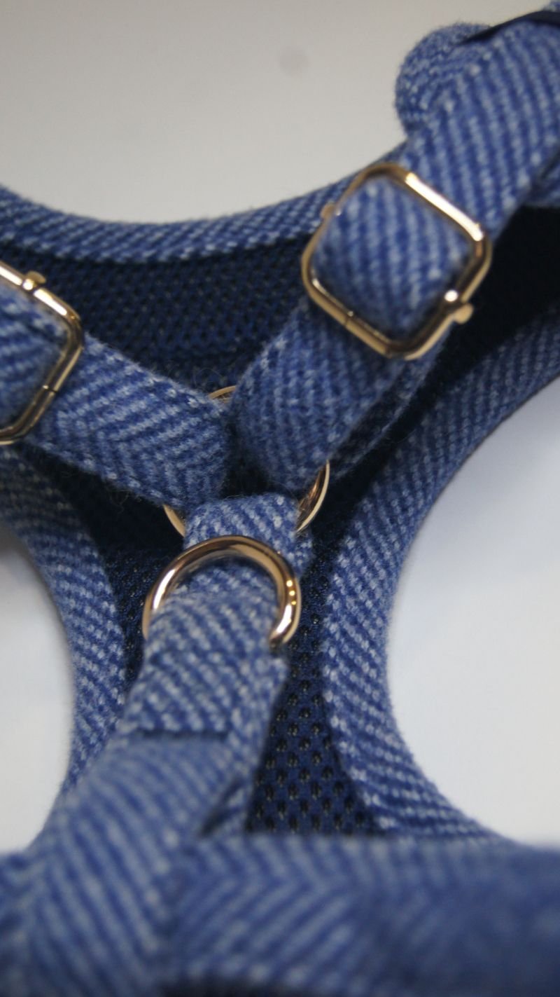 El arnés de la colección Tweed está confeccionado con lana resistente inspirado en un Icono de la Moda. Su patrón clásico lo hace único y elegante, resaltando una estética refinada y distinguida. El interior acolchado proporciona comodidad superior con malla transpirable para mantener frescura. Los accesorios son en metal dorado, cierres seguros para un ajuste perfecto. Con un toque sofisticado, ideal para cualquier ocasión, ya sea un paseo diario o un evento especial.