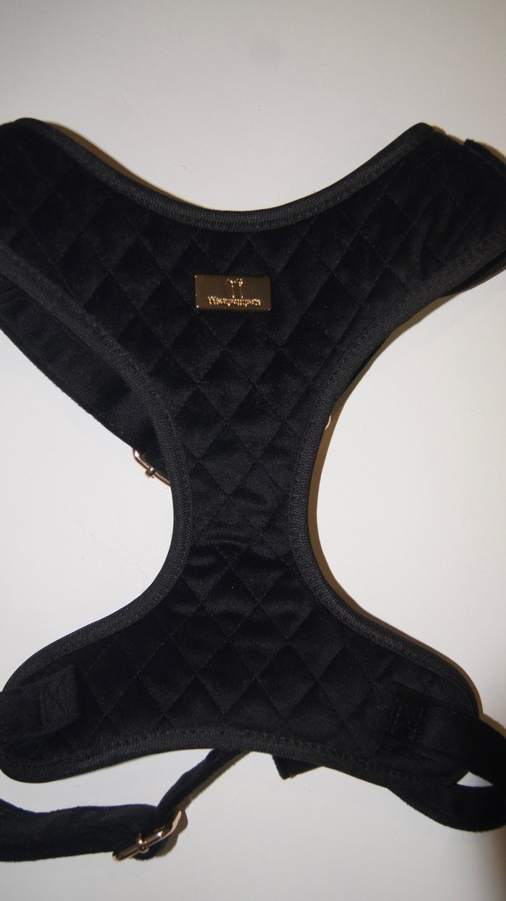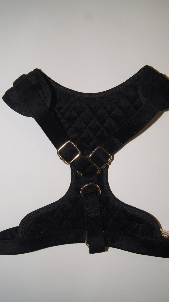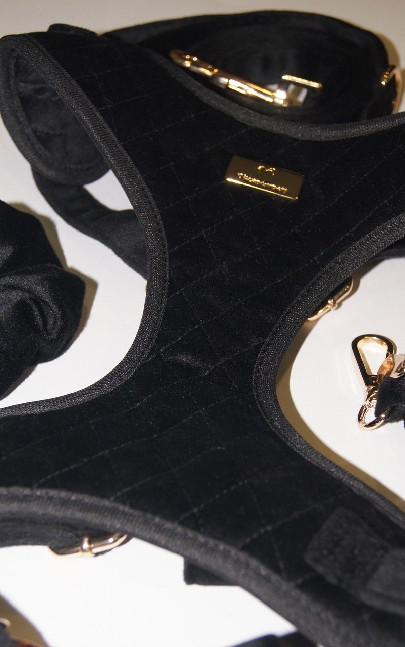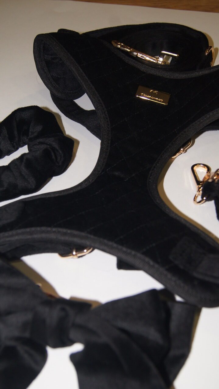 El arnés de la colección Velvet está confeccionado de un tejido de terciopelo combinando elegancia, comodidad y un toque lujoso que resalta la personalidad de nuestro perro. Su textura suave y agradable al tacto lo hace ideal para perritos con estilo y clase en cualquier ocasión. Es ajustable, accesorios de metal dorados y resistentes.