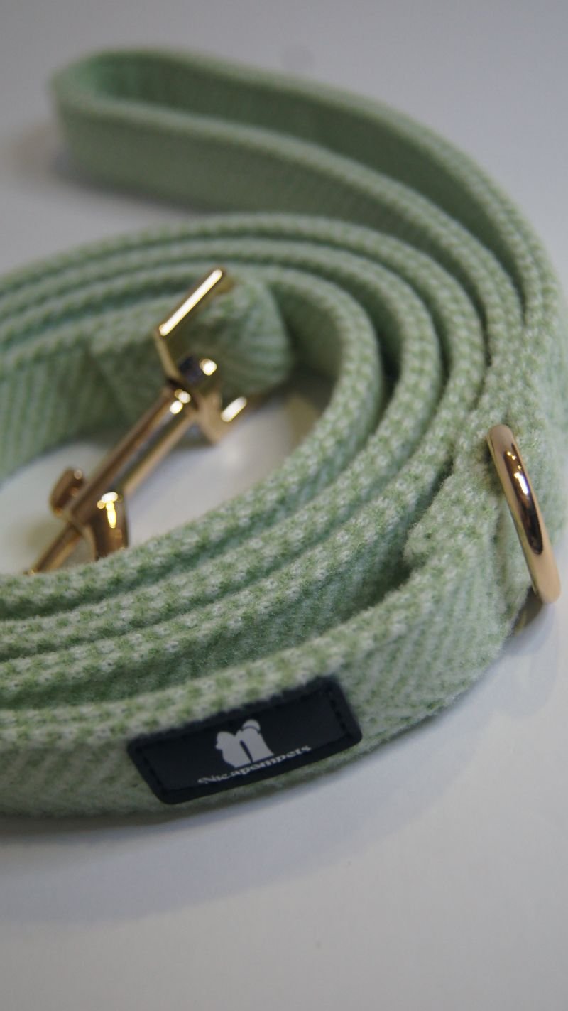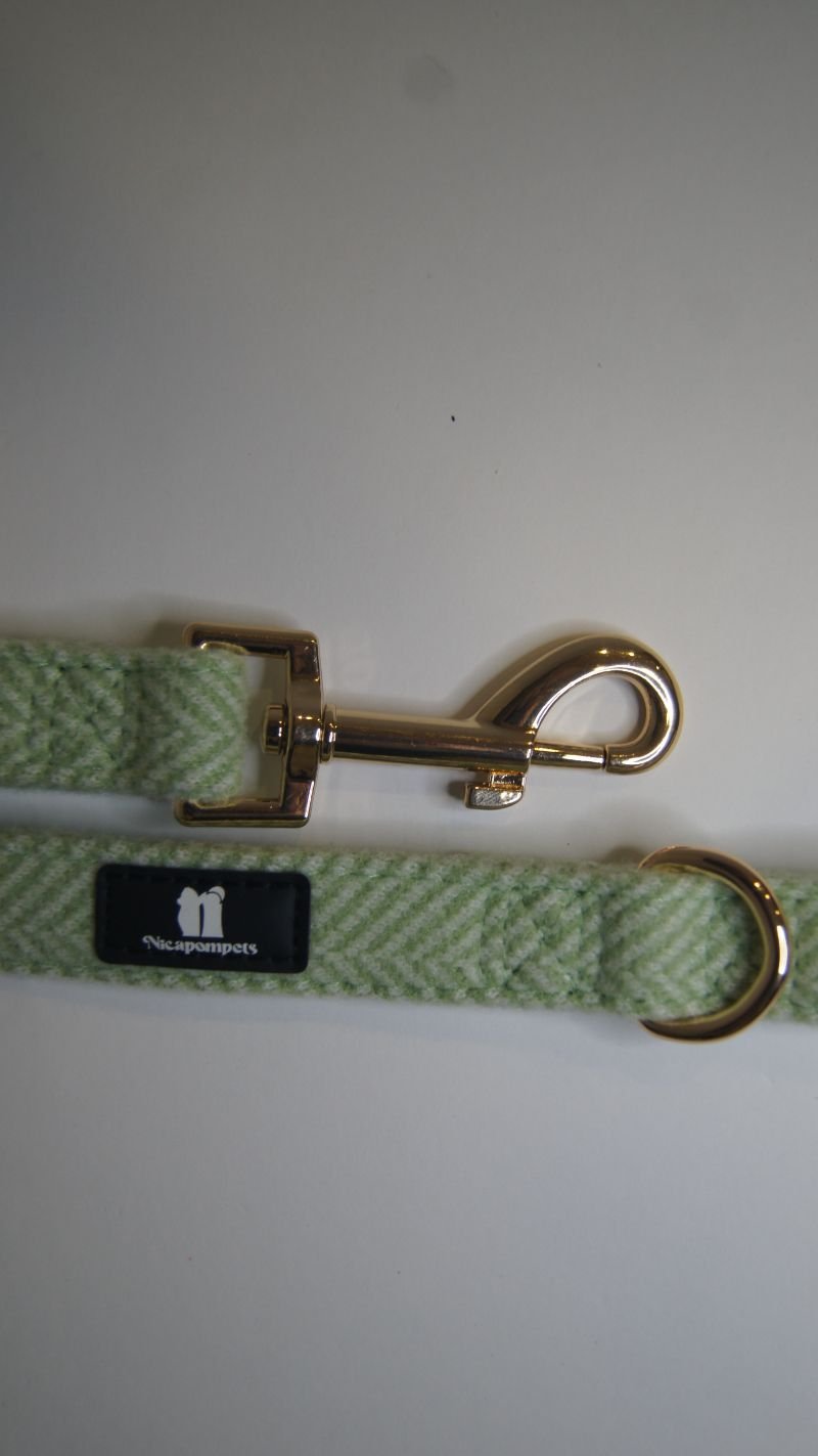 La correa de la colección Tweed complementa al arnés. El diseño combina durabilidad y elegancia, destaca por su textil de lana, su patrón clásico y refinado inspirado en la elegancia atemporal de la moda. Los accesorios de metal dorado y cierres seguros, aporta un toque distinguido que destaca en cualquier situación, convirtiéndola en un accesorio esencial para los amantes de la Moda Canina.