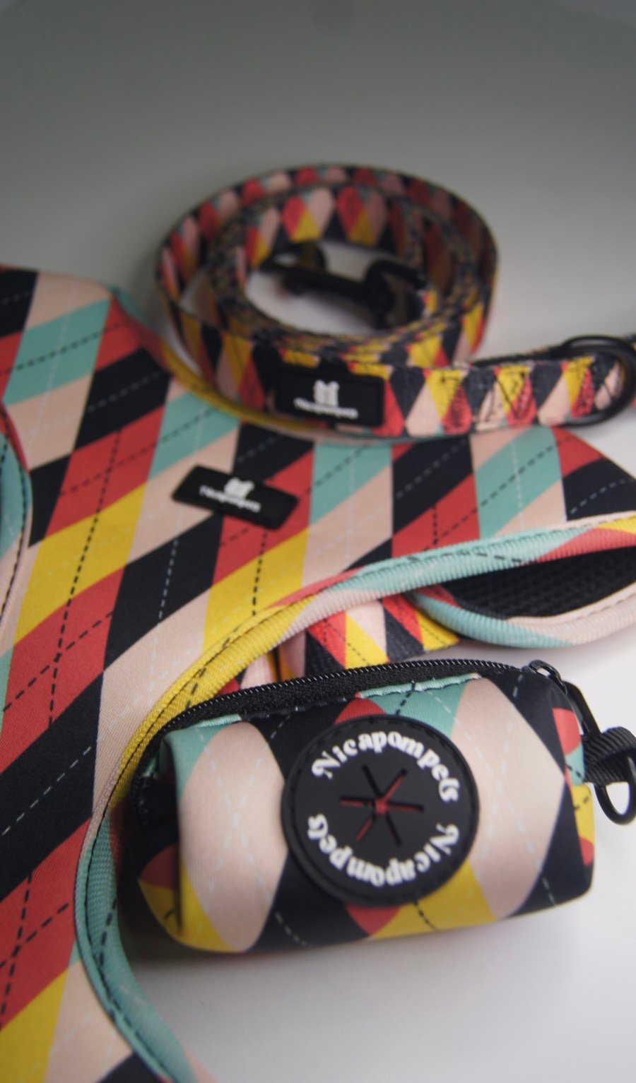 El portabolsas pequeño en tamaño pero grande en estilo. Con el mismo patrón geométrico lleno de color, este porta bolsas añade un toque moderno y práctico a cada paseo. Porque los detalles también vibran con energía positiva y hacen que cada día sea una explosión de diseño y funcionalidad.