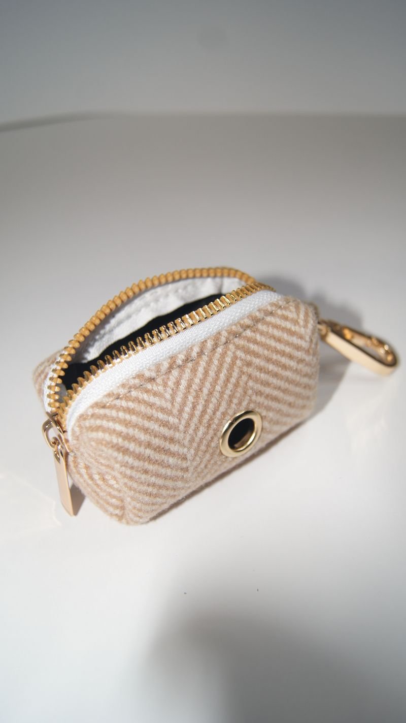 El porta bolsas de la colección Tweed combina practicidad con una estética clásica у elegante. Elaborado en lana resistente con su característico patrón atemporal, mantiene la armonía visual de la colección. Sus accesorios en metal dorado con un acabado único, bonito y elegante. Siempre estaréis a la moda mientras atiendes las necesidades de tu perro.